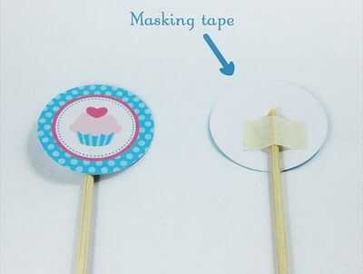 Vuelta los círculos y colocar un palillo o palo con la cinta adhesiva