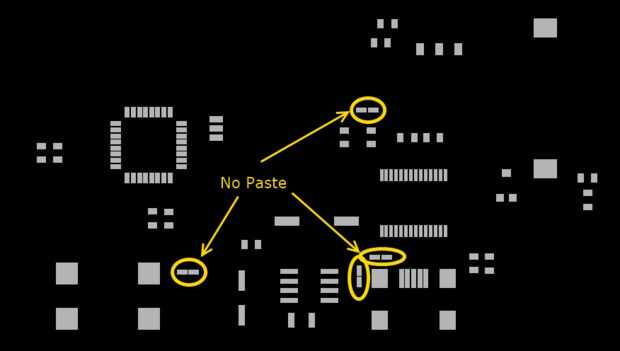 Concentrado en sólo algunos que la soldadura en cada cojín. Tensión superficial se chupan la soldadura en el centro de las pastillas bastante bien. Usted puede arreglar para arriba con mecha y soldador si hay puentes. Go muy escasa en el Atmega y FTDI huellas y más generoso para los demás componentes.