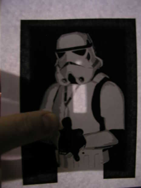 Mantenga su placa y su imagen a una luz, encontrar un buen punto para los orificios al tamaño en la foto, quitar cualquier exceso de papel, necesita aproximadamente media pulgada de margen para doblar alrededor de la parte posterior de la placa.