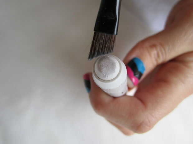 Tomar el pincel angular y aplicar algunas del delineador blanco sobre el cepillo.