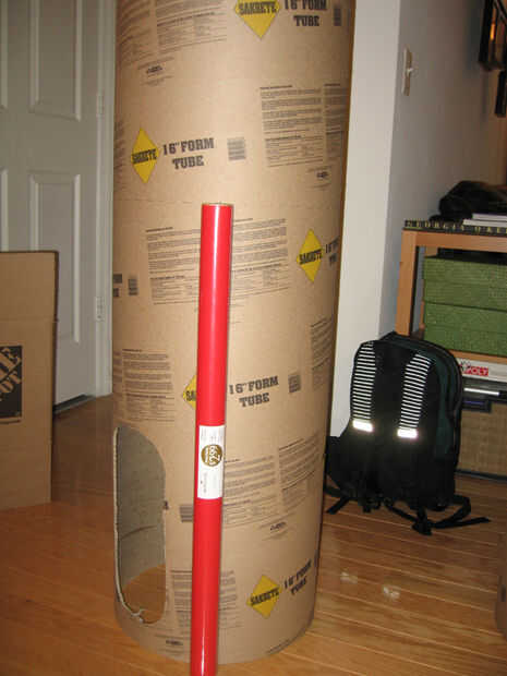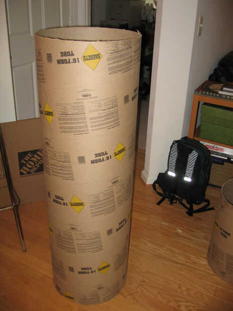 Una vez que se cortaron los agujeros del brazo, había recortado el tubo hacia abajo sobre la longitud de un tubo de papel de embalaje.