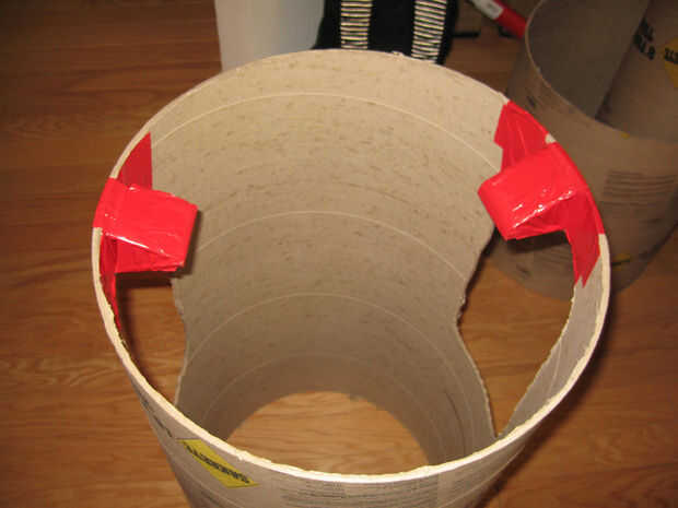 descubrí rápidamente que tratando de usar un tubo de cartón es realmente incómodo.  ¿Qué ayuda?  Un conjunto de impresionante hombro apoya para que el peso del tubo se distribuye sobre una distancia más amplia en los hombros.  Yo corte una tira de cartón de una caja de cartón y dobla en un triángulo entonces había montado por encima de los orificios del brazo para que alinea con donde mis hombros enrollaría para arriba.