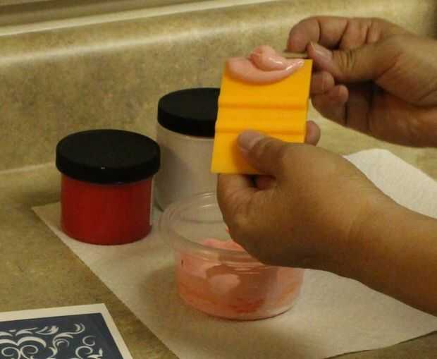 Cargar la tinta en la boquilla, o añadir una línea de tinta en la parte superior de la plantilla.
