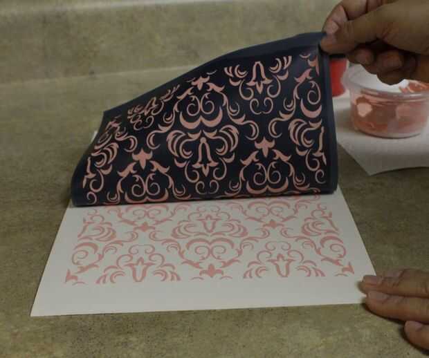Levante las esquinas de la plantilla para asegurarse de que la tinta ha pasado a través de todo el camino. Una vez que sabes que hay no hay vacíos, levante la plantilla totalmente apagado.