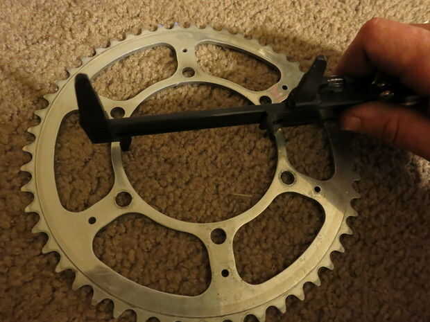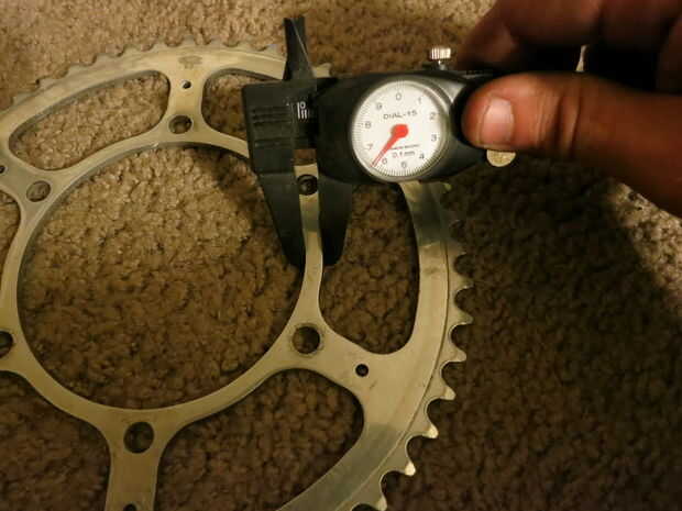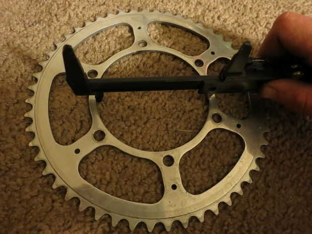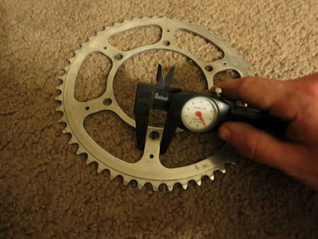 Para medir grandes diámetros como estos interiores, tengo uno de los extremos de la (regla, pinzas,) en un punto fijo y mueve el otro extremo en el otro borde y encontrar el lugar donde la medición es el más grande. Puede haber mejores formas, pero esto funcionó para mí.
