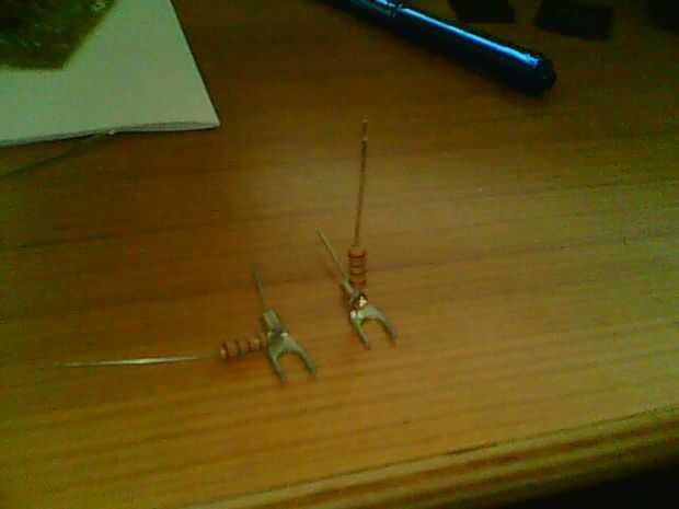 Utilice para ello las resistencias de 270ohms y vendido para las piezas extras (yo usé pequeños ganchos)