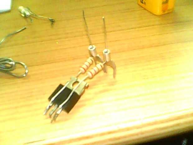 una vez que tenemos que hacer, tenemos que pegarlo al cuerpo (he utilizado un transistor grande creo que es un TIP31, no recuerdo) acaba de vender la resistencia para el transistor.