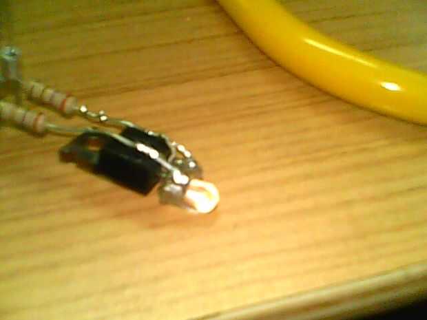 Que tenemos solded las piernas al cuerpo, tenemos que añadir la cabeza, para ello he utilizado un azul led. recuerda la posición para el ánodo y el cátodo. (+ / -) Asegúrese de unir los cables del led a la resistencia.