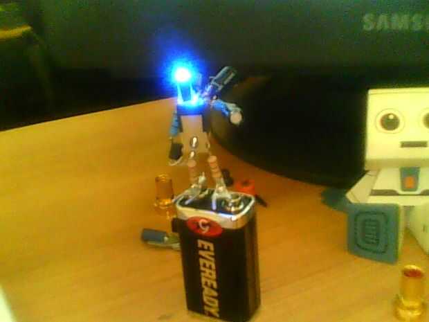para comprobar si wee vendido correctamente, pone las piernas sobre la batería de nuevo, si brilla, entonces hace un buen trabajo, cuando se desconecte de la batería, reloj cuidadosamente conducido, podr ver un poco de iluminación durante un tiempo, esto es la magia de condensadores, si nos conectamos bien, luego funciona como las pilas.