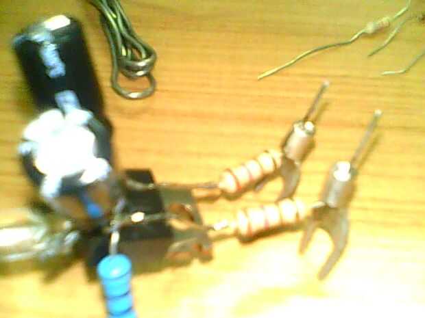 permite regresar al punto de. Ahora vamos a añadir algunas piezas útiles extra mira. tomar un condensador (utilicé 100uF ya que tiene un buen tamaño) y conectar el cátodo (+) del capacitor a la unión entre el cátodo de led. (se varían cuidado causa si usted mal, que no hay luz) y hacer lo mismo con el otro capacitor.