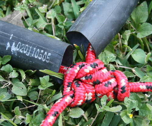 Ate las cuerdas más cortas para las cuerdas más largas con un enganche de Blake y un Nudo de figura 8.