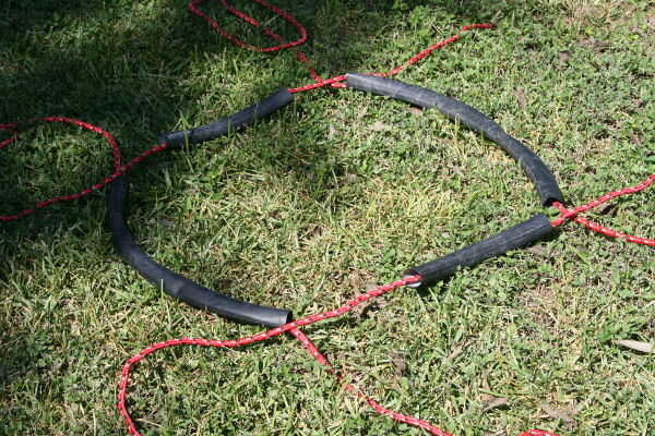 Pone las cuerdas más cortas paralelos uno al otro y por encima de las cuerdas más largas con los tubos interiores entre las cuerdas más largas.