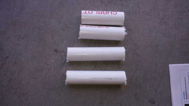 Corte el tubo de diámetro de 1" a la longitud con una sierra para metales. Usé 4 y 6" largos. Se podría hacer más largo si tienes una sierra de banda o sierra de mesa para cortar las secciones rasgadas hacia fuera con.