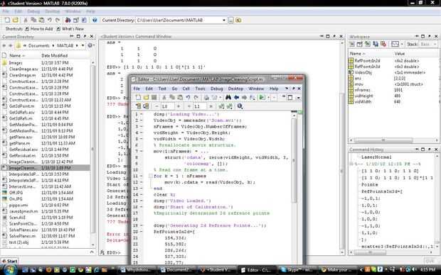 Las ideas detrás del software también son bastante simples. Hay una serie de puntos, cada uno de los cuales corresponden al mismo píxel de la cámara. En cierto sentido, la imagen de la cámara es un espacio proyectado de la real 3 dimensiones del espacio es la proyección de imagen. El truco es aprender a transformar puntos entre los dos espacios. Resulta que, esto equivale a una ecuación bastante simple. Si estás interesado, te agrego exploraciones de mi cuaderno de desarrollo para que usted mire a través. De lo contrario, te proveo con mi documentación y aplicación de matlab.