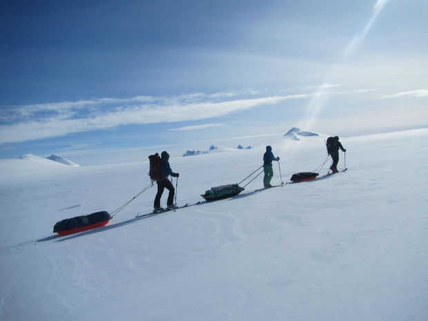 Yukonstruct en pareja con la sección de Yukon del Club alpestre de Canadá (ACC) para ofrecer un taller de pulk. En Yukon, miembros ACC van en viajes de esquí todo el año, un par de miembros acabo de volver más de un mes en los campos de hielo, esquí y alpinismo a la Cumbre de Mt. Logan (montaña más alta de Canadá; 2 º más alto en América del norte).