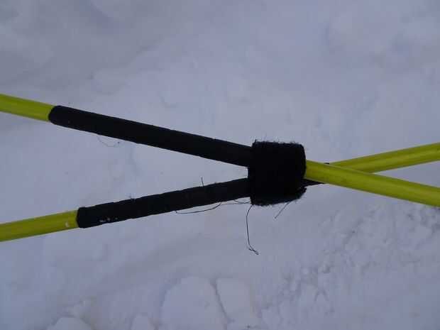 13. para un bonito toque final puede el centro de 6" de cada poste de cinta con una cinta de goma y use una envoltura de cable Velcro para asegurarse de que siempre se cruzan en el centro. (Foto 11)