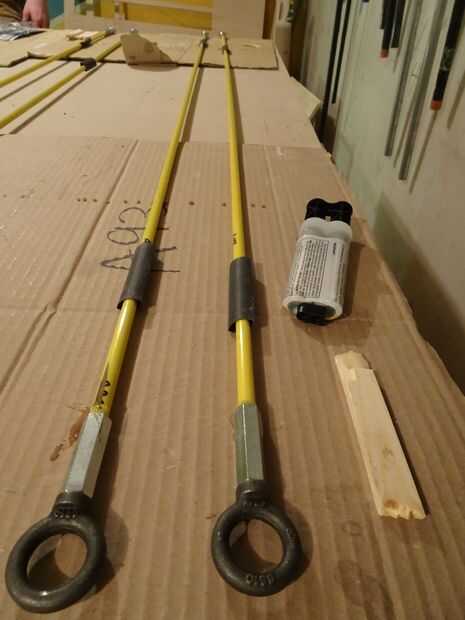 9. epoxi de la mezcla, aplicarlo a uno de los extremos y fijar la Asamblea final correctamente etiquetados. Repita en los cuatro extremos asegurándose de que el forjado final ojo y tirante se alinean en el mismo plano. Después de 2-3 minutos detrás de los extremos de ojo-tirante forjados algunas vueltas de la tuerca de acoplamiento para evitar que el epoxi pegar en forma permanente. Tener mucho cuidado en no mover la tuerca de acoplamiento y de fibra de vidrio (fotos 8 y 9)