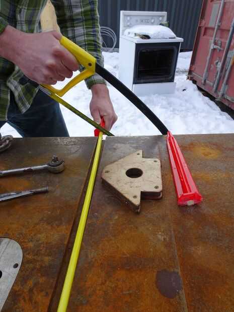 5. tomar los postes de fibra de vidrio y corte los extremos llegaron con si usted está usando marcadores de entrada ni reflectores. Asegúrese de que son la misma longitud cuando esté listo. (Foto 5)