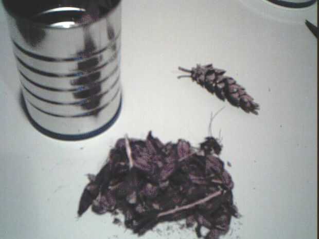 Vierte el alcohol sobre las hojas de cono asegurándose de que estén sumergidos. Guardar la lata vacía para el almacenamiento de su producto terminado.