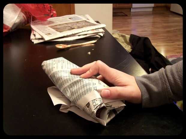 1. doble la esquina inferior sobre cosas y conos de pino.