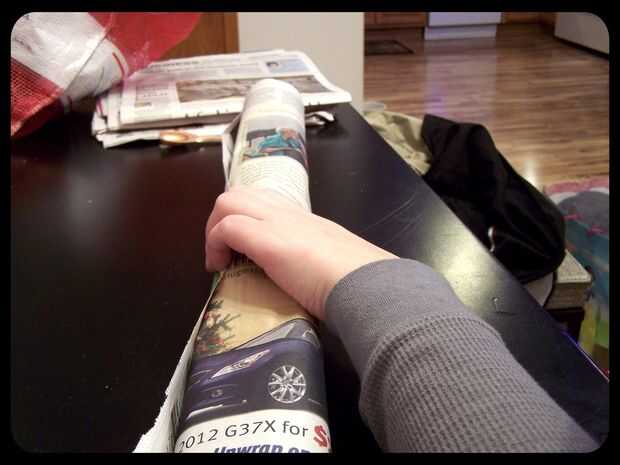 Luego, cuando estés listo para un incendio, los registros de la pila y coloque esto en alguna parte entre los registros. El papel y las pelusas actúan como una luz rápida mientras que los conos de pino actúan como astillas. Las hierbas son puramente para el olor.