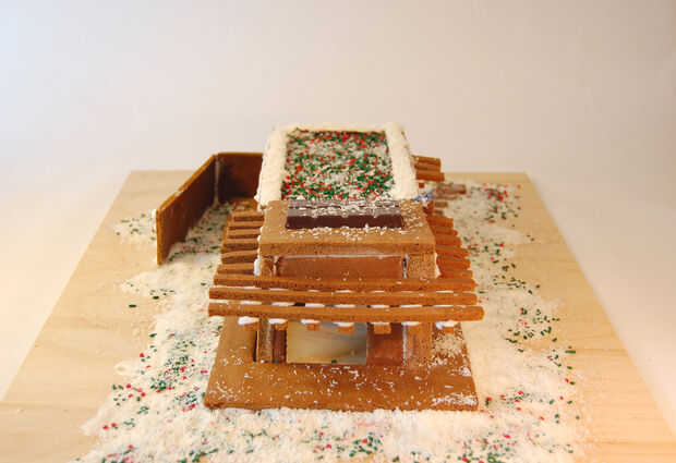 Una vez que cada pieza está establecida y ha tenido otra media hora para secar puede ser decorar! Aplicar el chocolate fudge en su techo de vida y cubrir con verde o Granillo de Navidad y coco rallado. De hielo por su chocolate paneles solares en la porción inclinada de la azotea (si sientes que tu gingerLotus necesita más potencia de 1,6 kw no dude utilizar plazas más chocolate!).