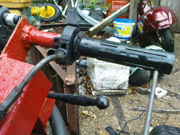 Usted tendrá que cortar parte del manillar que rodean el acelerador y freno y soldar estas barras al va el kart para que se los puede utilizar con los pies.