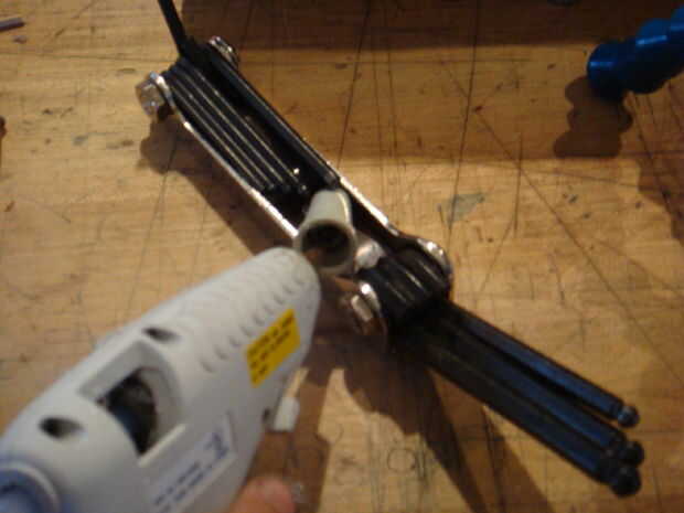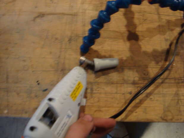 1. poner pegamento en el perno de 1/4 de pulgada y deslícelo rápidamente en la boquilla como se muestra.
