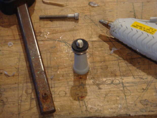 3. agregar arandelas de goma al extremo del perno 1/4 de pulgada hasta cerca de 3/8 de pulgada del tornillo son visibles por encima de las arandelas.
