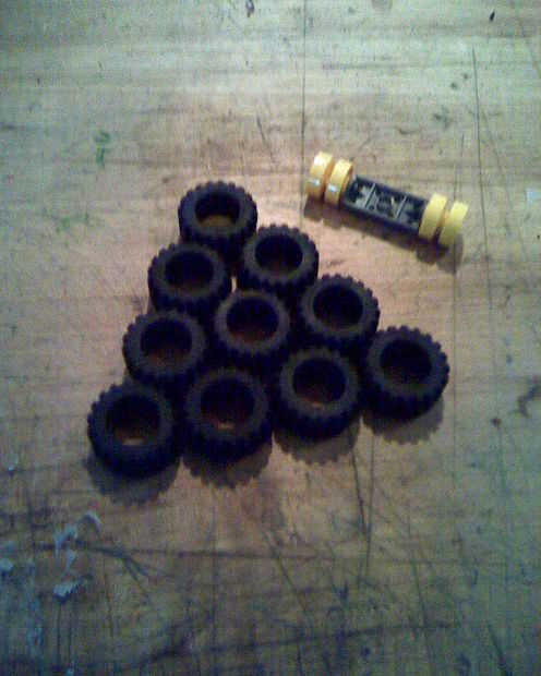En este paso vamos a añadir algunos agarre a nuestro gorila Pod. Este paso es opcional, pero recomendado. Usé algunos neumáticos de Lego. Se asegurará con pegamento caliente. Gracias a pato limón para la idea de utilizar neumáticos de Lego! 1. poner llantas en las patas, dos en cada pierna. 2. encolar con el adhesivo caliente. 3. cortar un neumático en tres o cuatro secciones con alicate o tijeras. 4. pegar una sección en el extremo de cada pierna.