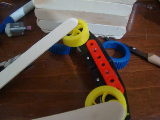Únete a las cajas de engranajes con un depresor lingual o un pedazo de plástico.