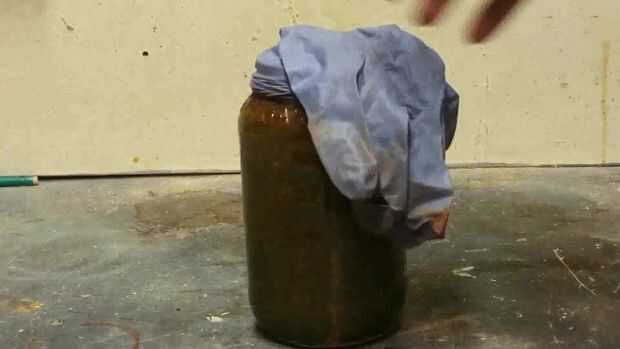 Sólo uso un guante de látex se agujeros corte en él. El guante del látex mantendrá insectos y la suciedad hacia fuera. Durante la reacción, las burbujas de gas se elevará a la parte superior de la jarra y escape por los agujeros colocados en el guante del látex.