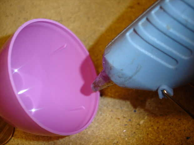 - Inmersión media un pegote generoso de pegamento en la parte inferior de la parte inferior de su huevo.