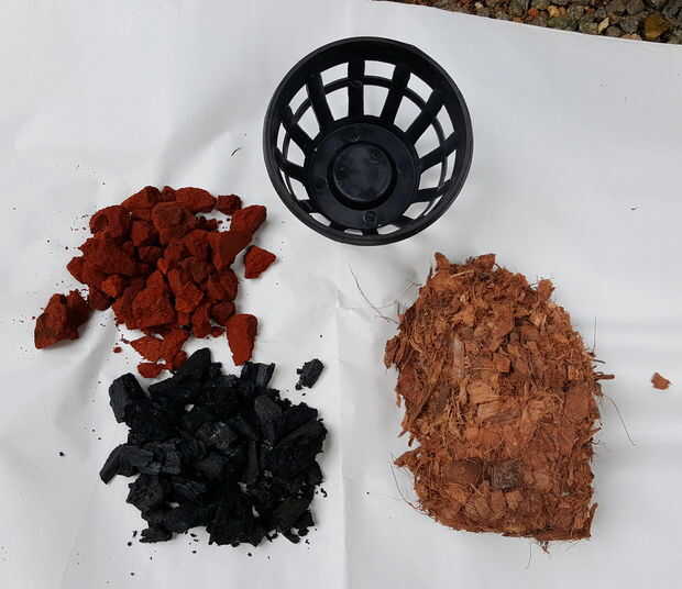 • Para comenzar con, mezcla para macetas más común consiste en piezas rotas, carbón de leña de ladrillos y tejas, cáscara de coco y fibra. Aquí se utiliza un medio para macetas.