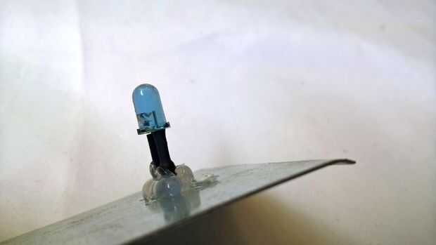 El transmisor: He hecho un soporte con la ayuda de la hoja GI. Puede utilizar su propia idea para montar el IR led en el dispositivo. en vez de soldar los cables al LED, decidí usar la hembra que se puede quitar fácilmente. En el otro extremo, otra vez usé cabeceras masculinas.