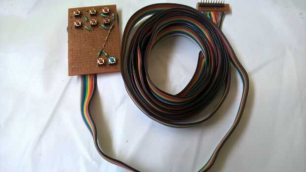 El control remoto: Usé un tablero perforado para hacer el control remoto. Utiliza 6 botones con 1K tire de resistencias y soldar cable de cinta larga 4 m a él. Se instalará el circuito pulsador justo al lado de mi cama, mientras que el otro extremo se conectará al tablero de regulador micro. También he añadido cabeceras hombres al otro extremo para mayor comodidad.