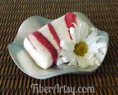 Enjuague el jabón y ponerlo secar. Añadir un arco bonito y su felted soap se convierte en un gran regalo!