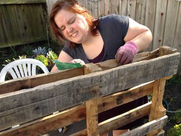 Porque las plataformas se hacen con madera de baja calidad, son sólo sobre cargado con astillas. Lijado hacia abajo no sólo hará más fácil para usted manejar, sino también evitará que la tela del paisaje rasgado cuando la pongo. Tenga cuidado de cómo entusiastas estás al lijar, por lo que no accidentalmente de la arena a través de los guantes y luego apuñalar a sí mismo con una astilla perdida.