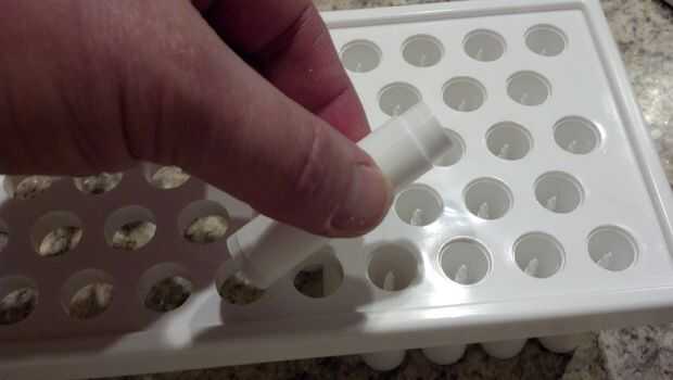 aquí. Este kit tiene 24 tubos listos para el relleno, además de un soporte y una espátula pequeña, que no tengo que usar para este proyecto. En total, el kit entero cuesta menos de dos de los tubos casi extintos de Chapstick productos naturales.