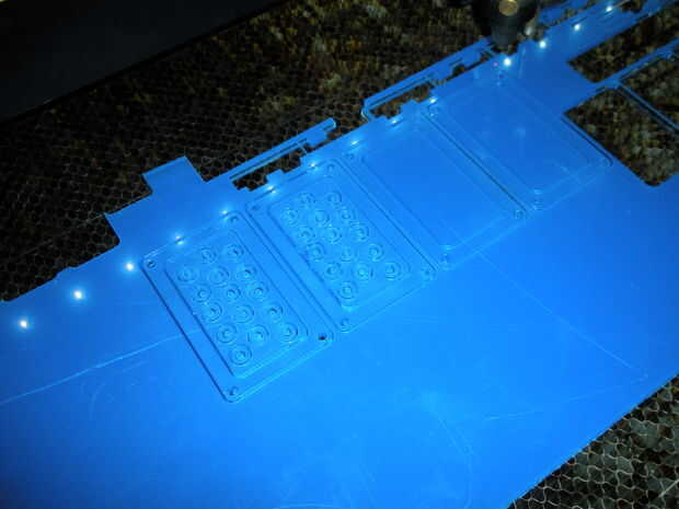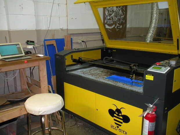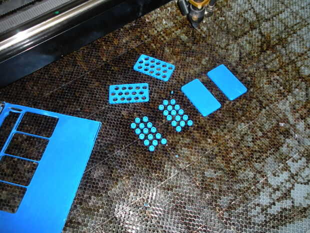 El enfrentamiento en los cuadros a continuación donde en un enorme 150 vatios láser de corte en mi hacker local tienda i3Detroit.com en Ferndale, MI. Primer plano que, podría utilizarse un cortador láser más pequeño como puede cortar el material. Ah, y supongo que usted puede usar cualquier material siempre y cuando sea seguro al corte en el cortador del laser.