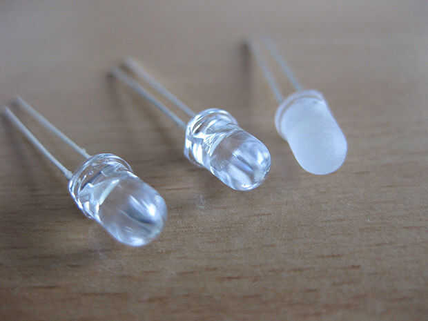 1. necesitamos papel de lija fino para conseguir el efecto difundido que queremos. El mejor papel de lija a utilizar es algo entre 200 y 400. La utilicé fue 240. Arena el conjunto LED hasta llegar el efecto LED difuso. Puede ver la diferencia de un agua clara y el LED 'difusa' en las fotos de abajo.