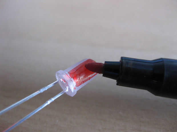 Asegúrese de que le cubren con que todo el LED el marcador así que ahí no brilla cualquier luz blanca a través de ya.