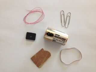 Bienvenido al maravilloso mundo de la electrónica!! Hoy construir un motor eléctrico. Utilizará una combinación de electricidad y magnetismo para hacer girar el alambre del imán.Materiales que necesitará:D 1 batería (más son opcionales)2 clips de pap