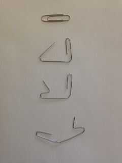 Doblar forma los clips para adaptarse a la imagen (la imagen de arriba muestra la progresión de cómo doblar el clip. El clip de fondo debe ser el producto final)