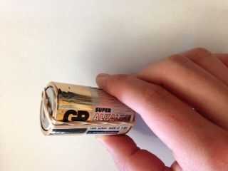 Envolver la goma dos veces alrededor de la batería (el largo camino que va), o hasta que el elástico está seguro a la batería.