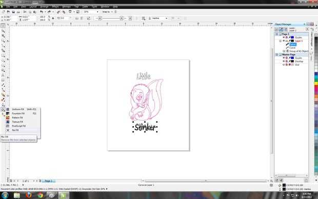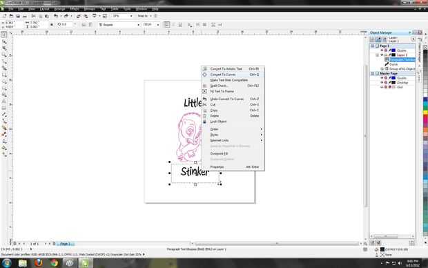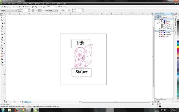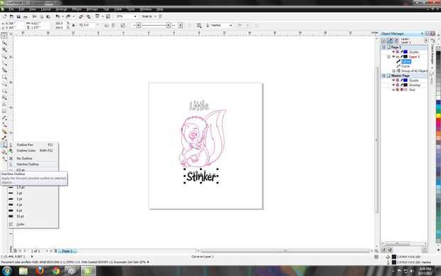 He añadido texto para hacer la onezie personalizada. Para ejecutar dos colores diferentes en la pantalla de seda hay que preparar el archivo para permitir que funcione en el cortador del vinilo.