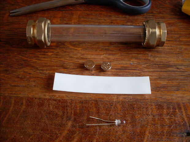 Como recipiente usé un tubo de acrílico y dos tapones de cachondeo (utilizados en fontanería). Utilicé esta causa materiales quería un recipiente impermeable pero puedes usar lo que quieras.