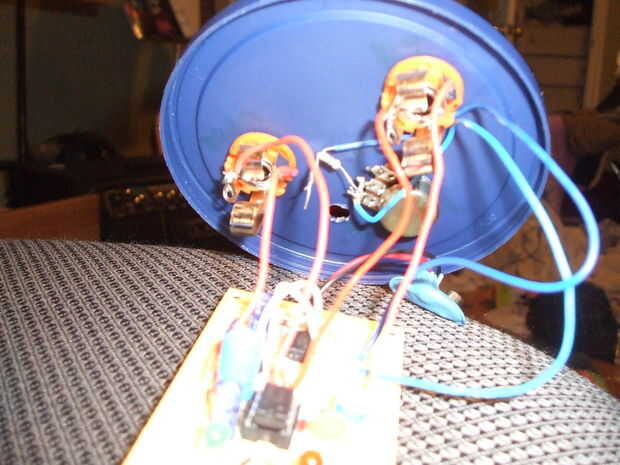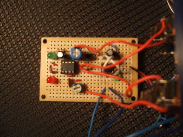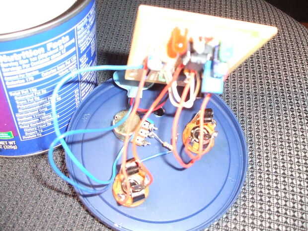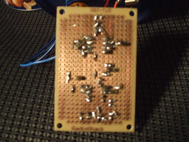 Antes de que realmente la soldadura, debe probar el circuito en un protoboard. Lo que hice fue dividir el circuito en trozos y probar cada uno (el temporizador, el transistor y el amplificador de audio). Lo siento no tengo fotos del proceso de compilación, pero que no estaba esperando hacer un instructable sobre el proyecto hasta después de lo construyó.