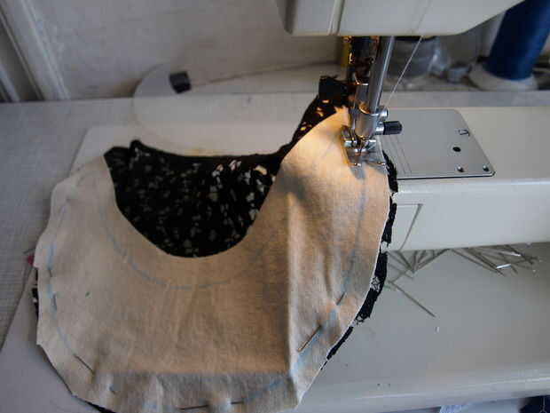 Poner las piezas juntas y coser la costura exterior sobre el chalkline.