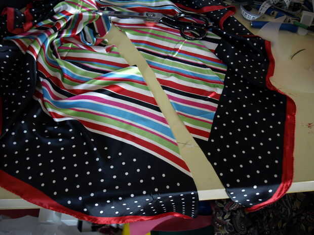 colocar una válvula de bolsa (pantalones vaqueros) en un pañuelo, toalla de té o vintage paño, terminando con un recorte. Anudar la tela de diferentes formas para diferentes estilos!Paso 1: hacer el patrón y válvula interna Usar un casquillo viejo co